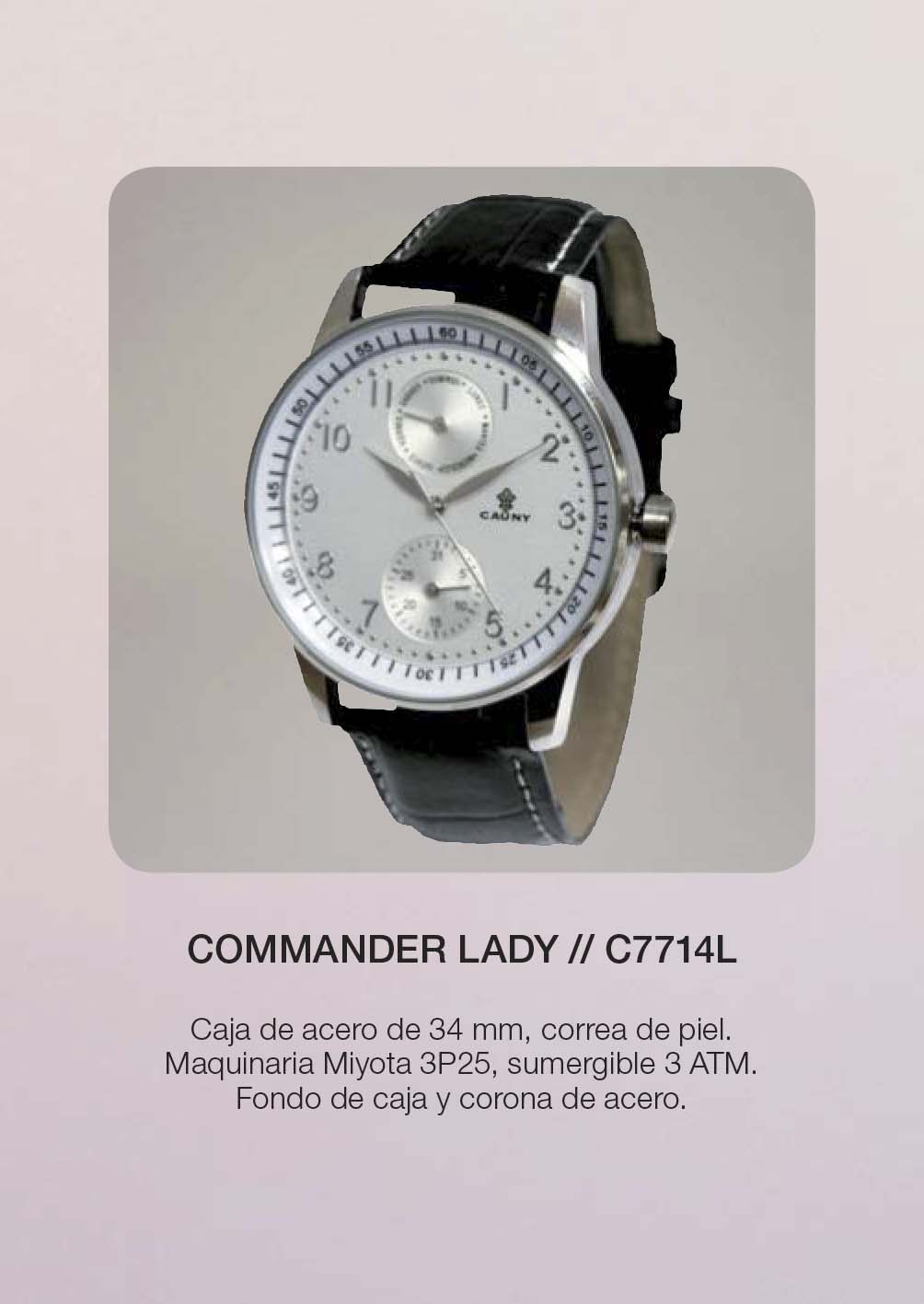 Reloj de Señora. Caja de Acero de 34 mm. Esfera de color Plata. Maquinaria multifunción, modelo Miyota 3P25. Correa de Piel en color Negro. 3 ATM Sumergible