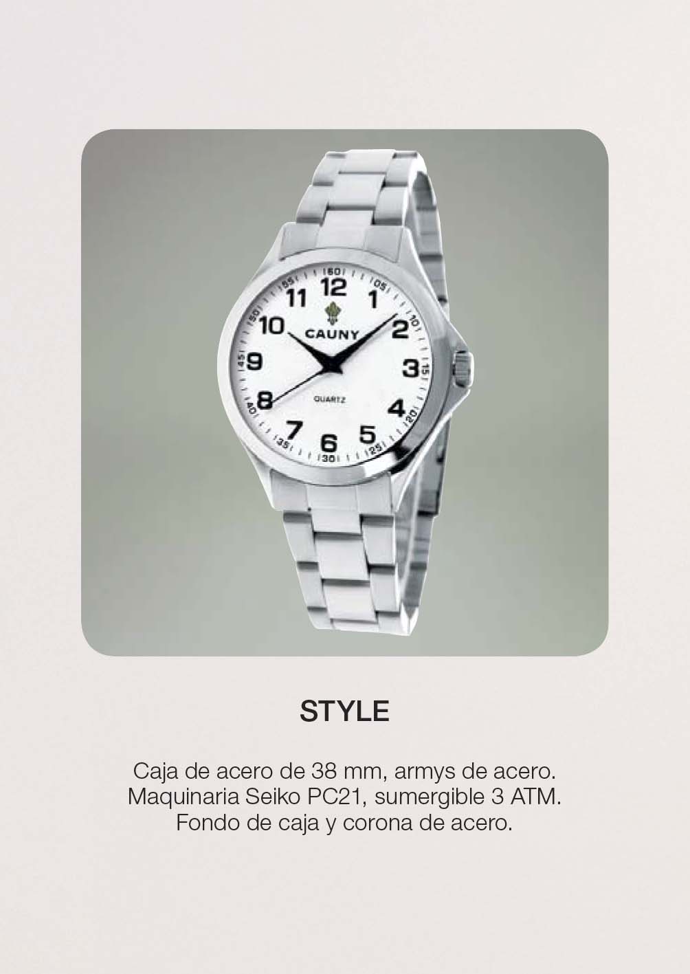 Reloj de Caballero. Caja de Acero de 38 mm. Esfera de color Blanco . Maquinaria 3 agujas, modelo Seiko PC21. Correa de Acero en color Plata. 3 ATM Sumergible