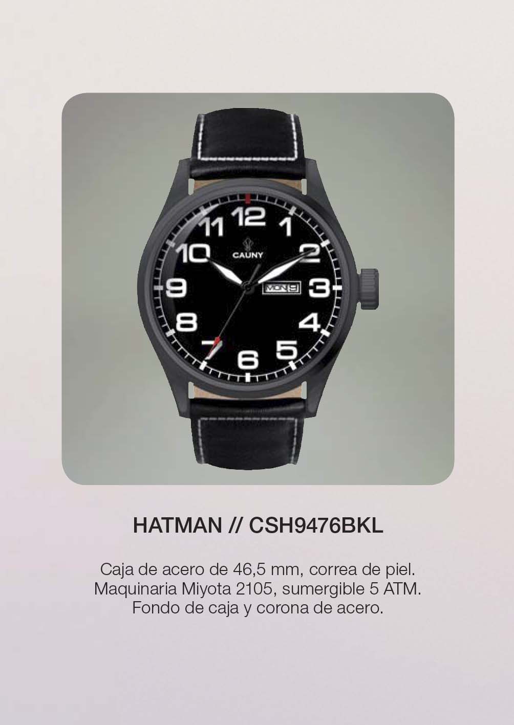 Reloj de Caballero. Caja de Acero de 46,5 mm. Esfera de color Blanco . Maquinaria 3 agujas, modelo Miyota 2105. Correa de Piel en color Negro. 5 ATM Sumergible