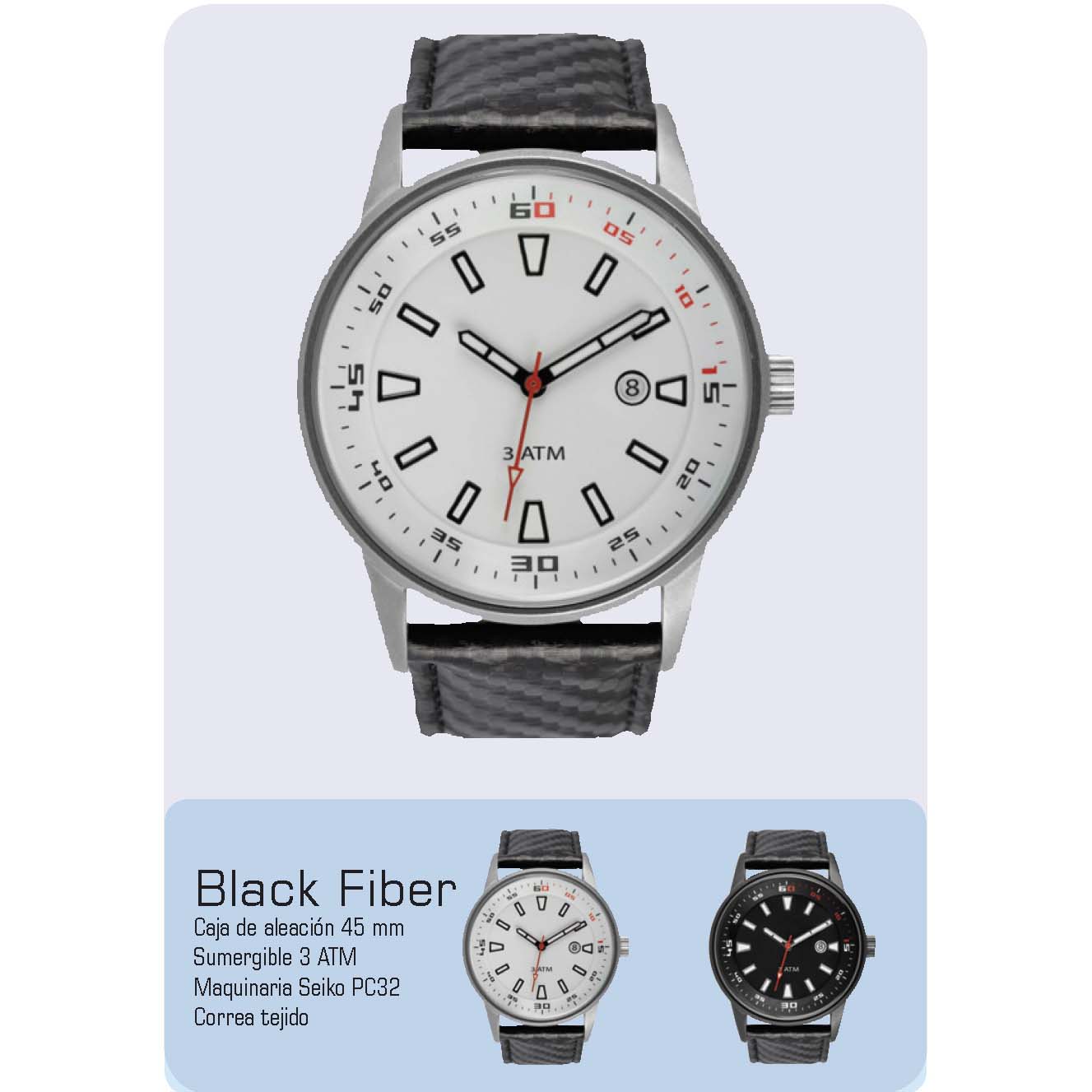 Reloj de Caballero. Caja de Aleación de 45 mm. Esfera de color Blanco . Maquinaria 3 agujas, modelo Seiko PC32. Correa de tejido en color Negro. 3 ATM Sumergible