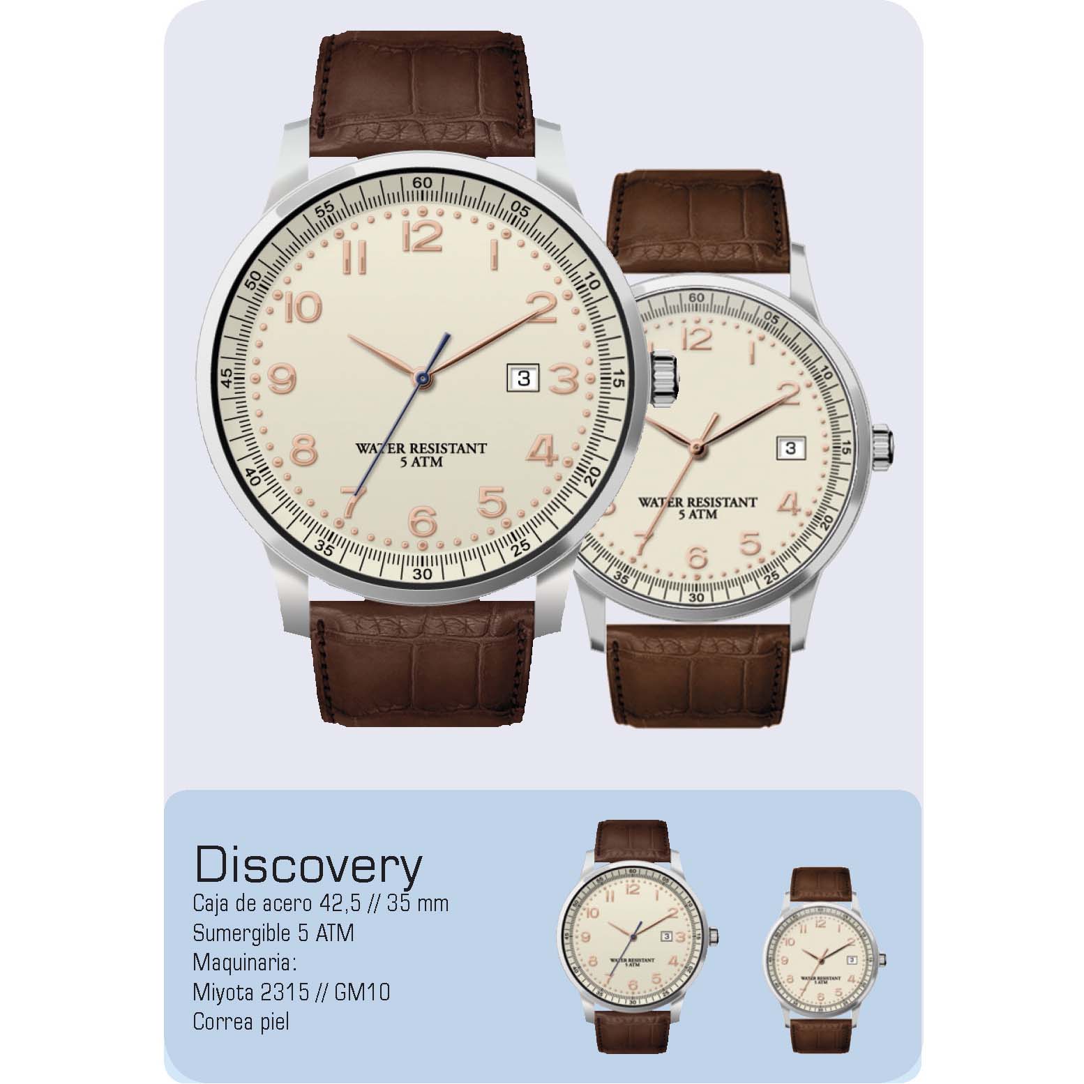 Pareja de Relojes. Caja de Acero de 42,5 // 35 mm. Esfera de color Beige . Maquinaria 3 agujas, modelo Miyota 2315 // GM10. Correa de Piel en color Marrón. 5 ATM Sumergible