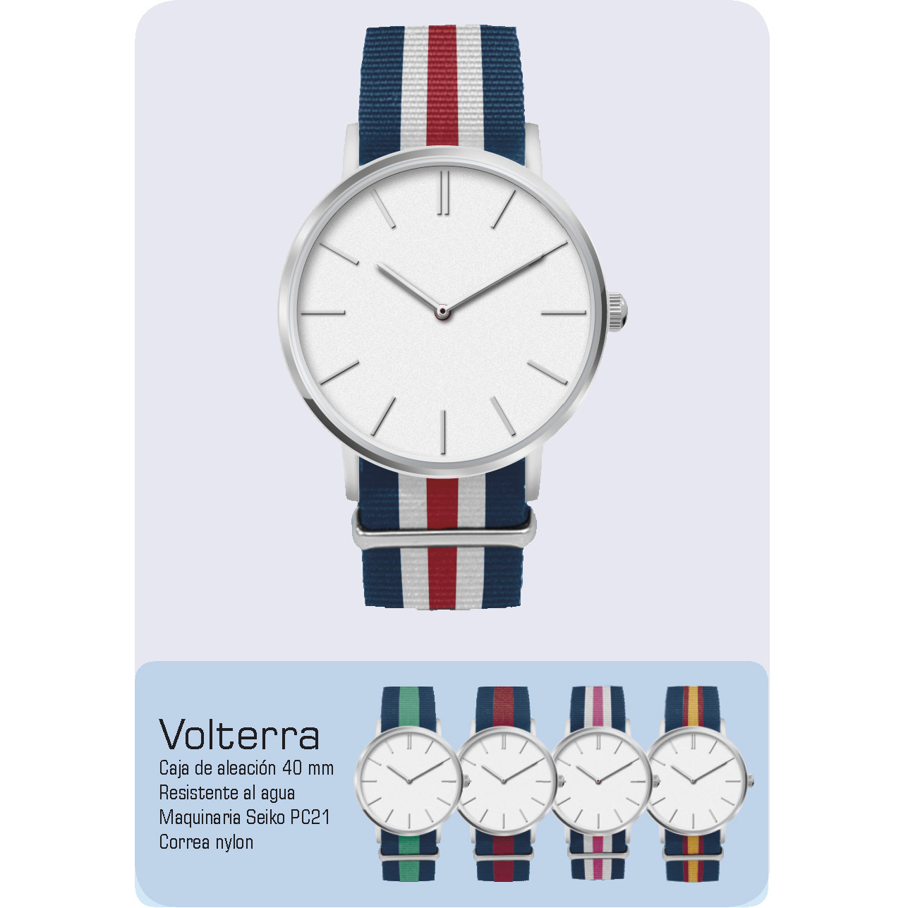 Reloj de Caballero. Caja de Aleación de 40 mm. Esfera de color Blanco . Maquinaria 3 agujas, modelo . Correa de Nylon en color Multicolor.